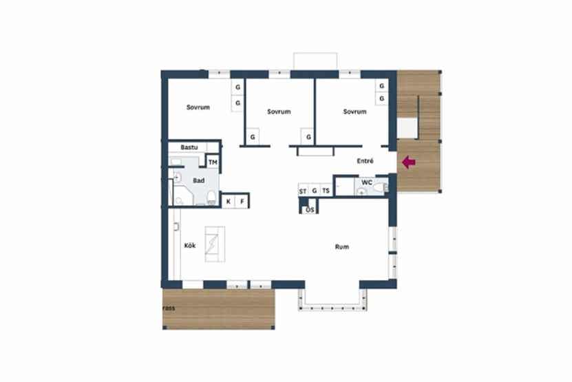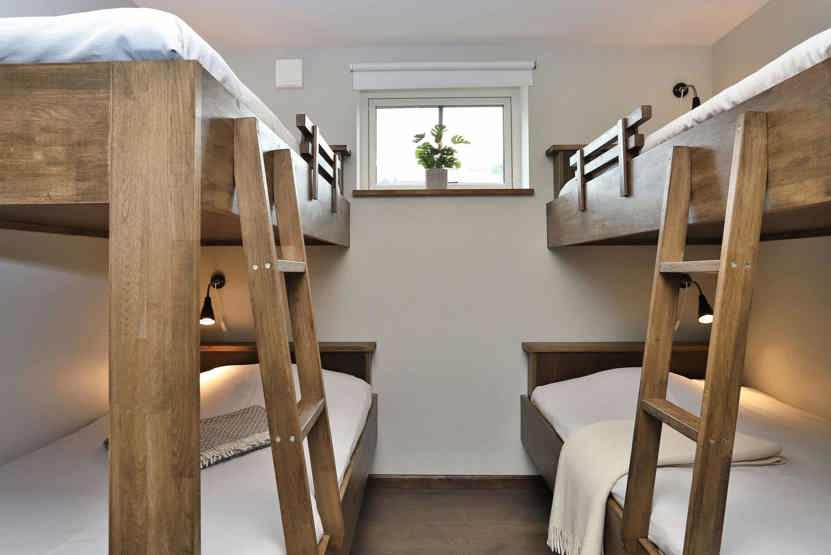 Soveværelse-1 = 1 dobbeltseng. Soveværelse-2 = 1 dobbeltseng. Soveværelse-3 = 2 køjesenge med 105 cm bred underkøje.