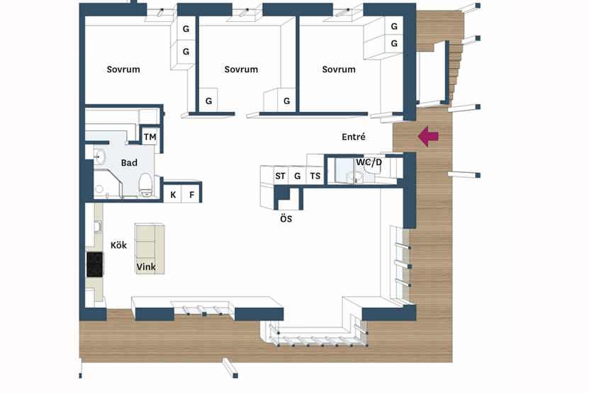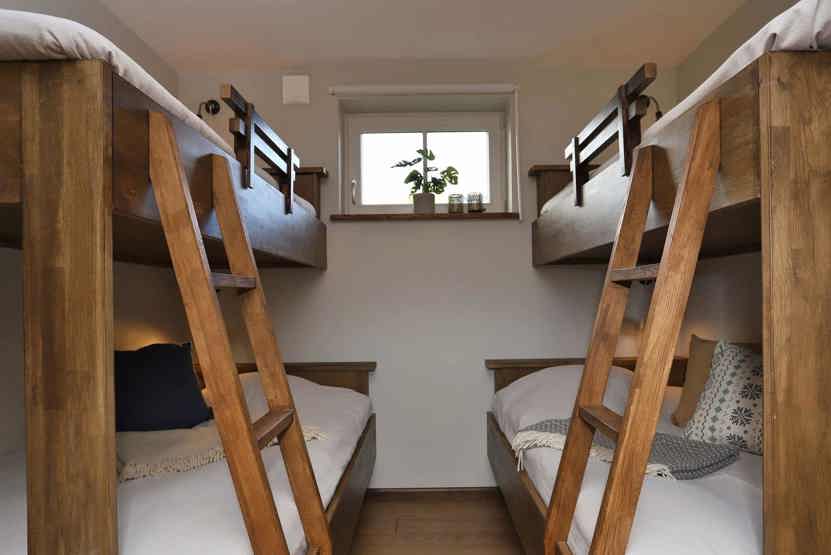 Soveværelse-1 = 1 dobbeltseng. Soveværelse-2 = 1 dobbeltseng. Soveværelse-3 = 2 køjesenge med 105 cm bred underkøje.