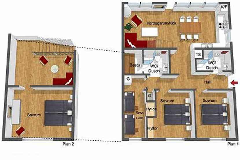 Soveværelse-1 = 1 dobbeltseng 180 cm bred. Soveværelse-2 = 1 dobbeltseng 180 cm bred. Soveværelse-3 = 1 dobbeltseng 180 cm bred. Soveværelse-4 = 2 enkeltsenge 90 cm bred.