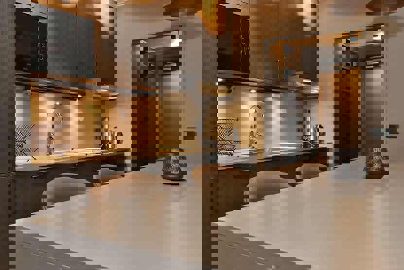 Køkkenet indeholder elkomfur med ovn, køleskab med fryser, opvaskemaskine, mikro.