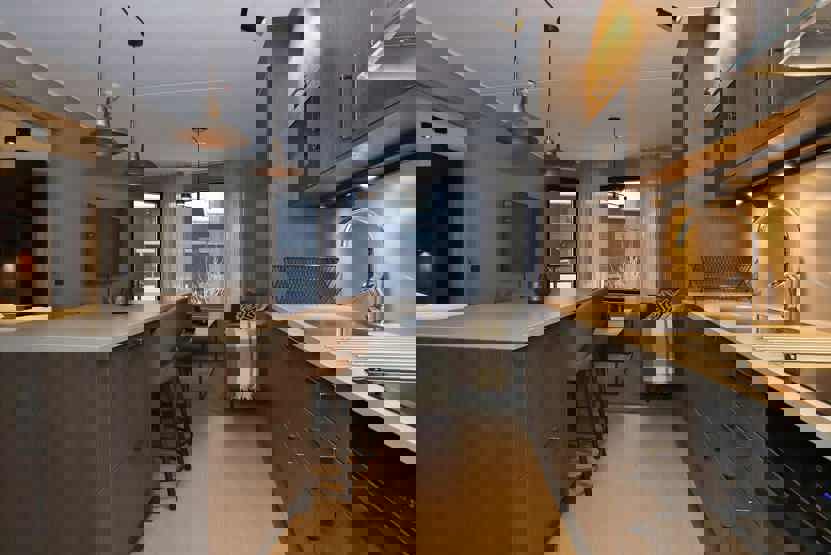 Køkkenet indeholder elkomfur med ovn, køleskab med fryser, opvaskemaskine, mikro.