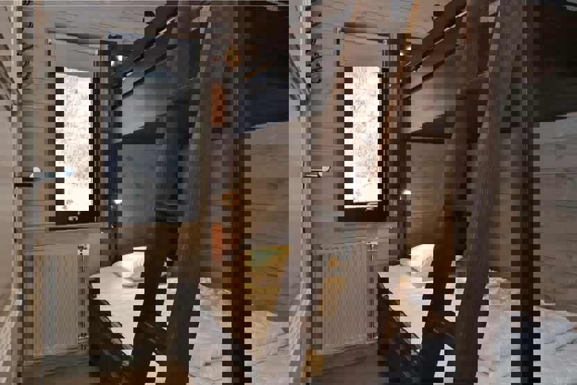 Soveværelse-1 = 1 dobbeltseng. Soveværelse-2 = 1 dobbeltseng. Soveværelse-3 = 1 køjeseng med 120 cm bred underkøje. Soveværelse-4 = 1 køjeseng med 120 cm bred underkøje.