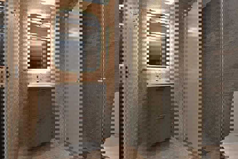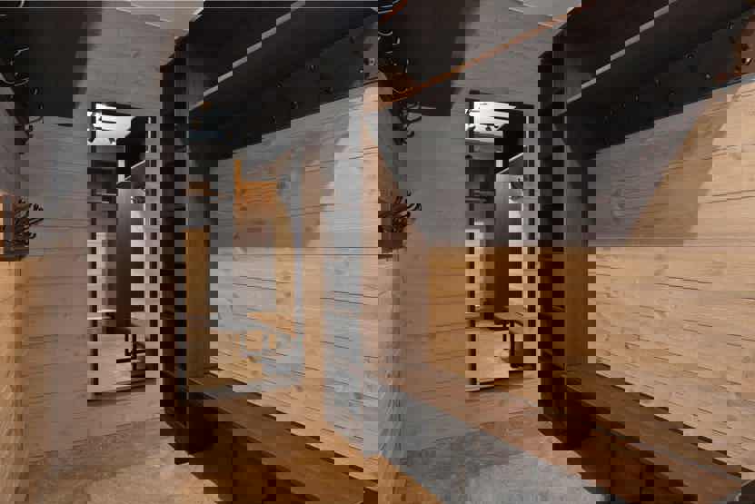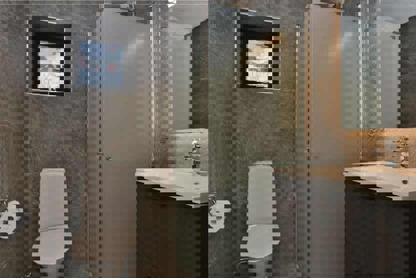 Badeværelse 1 = bruser/WC/sauna. Badeværelse 2 = bruser/WC.