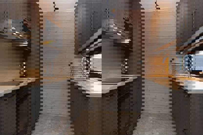 Køkkenet indeholder elkomfur med ovn, køleskab med fryser, opvaskemaskine, mikro.