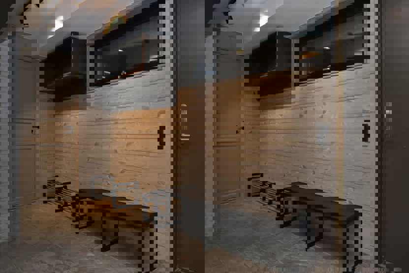 Badeværelse 1 = bruser/WC/sauna. Badeværelse 2 = bruser/WC.
