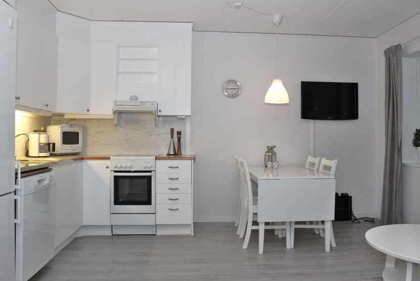 Stue med køkkenafdeling.