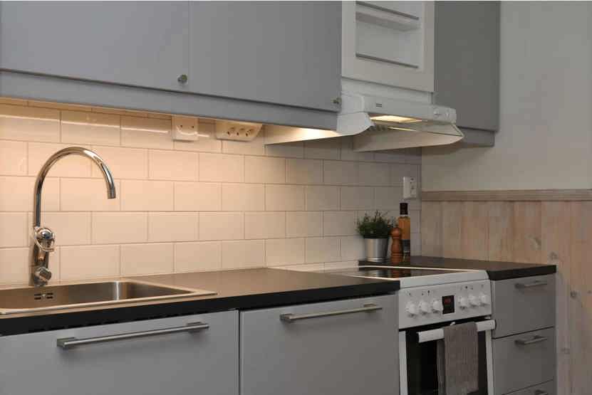 Stue med køkkenafdeling.