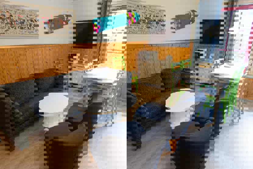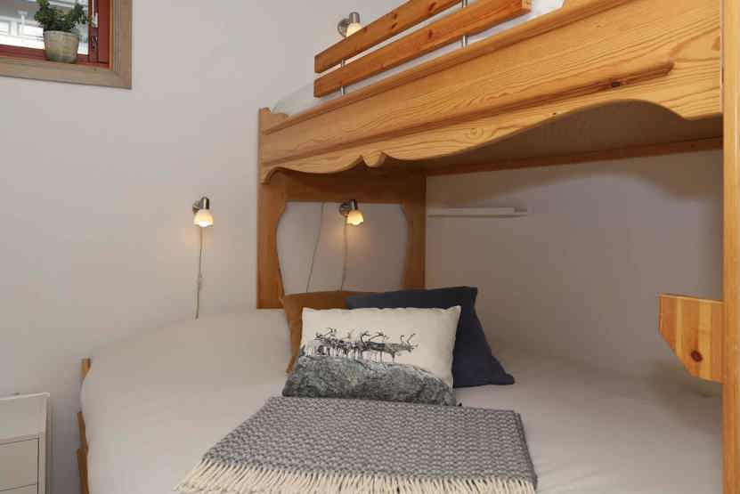 Soveværelse-1 = 1 køjeseng med 150 cm bred underkøje. Soveværelse-2 = 1 køjeseng.