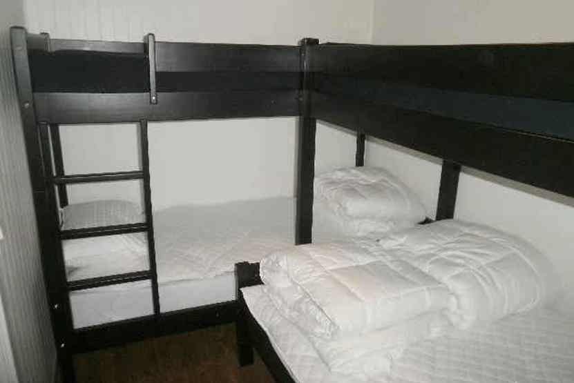 Soveværelse-1 = 1 dobbeltseng 180 cm bred. Soveværelse-2 = 1 våningssäng m1 køyeseng med 105 cm bred underkøye og 90 cm bred overkøye, 1 køjeseng hvor både over og underkøje er 90 cm bred. Soveværelse-3 = 1 sovesofa.