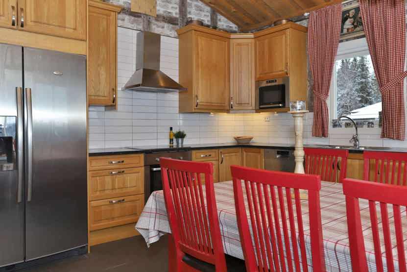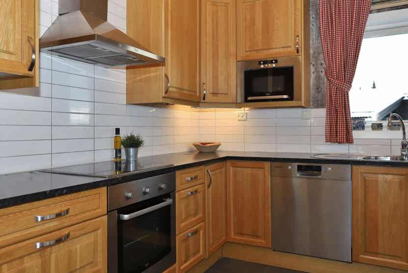 Køkkenet indeholder elkomfur med ovn, køleskab/fryser med ismaskine, opvaskemaskine, mikro.