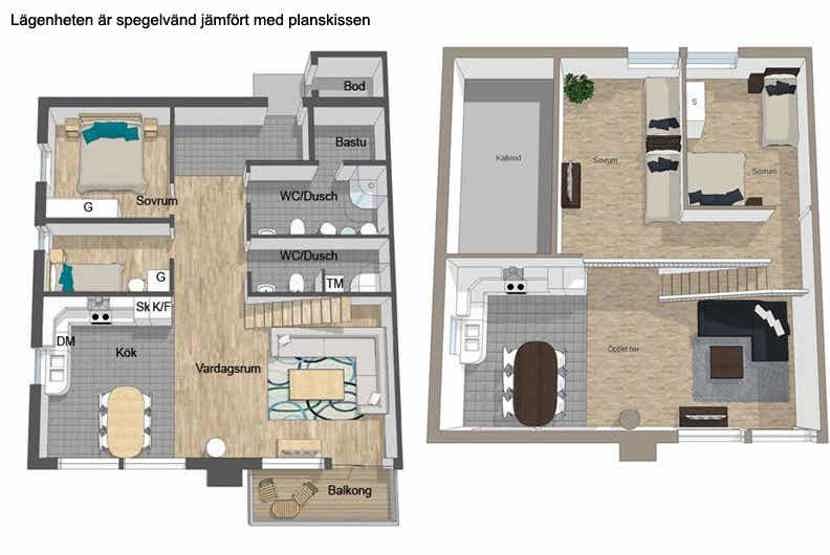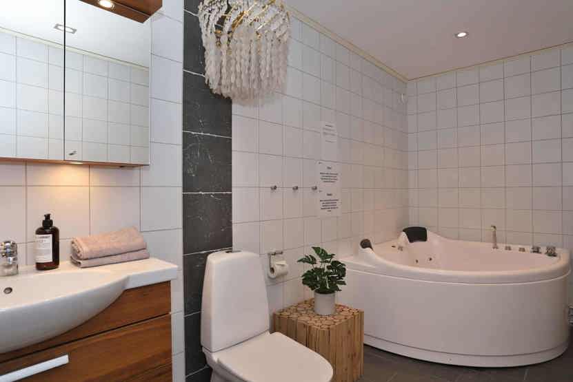 Badeværelse 1 = bruser, WC, jacuzzi, sauna. Badeværelse 2 = bruser/WC.
