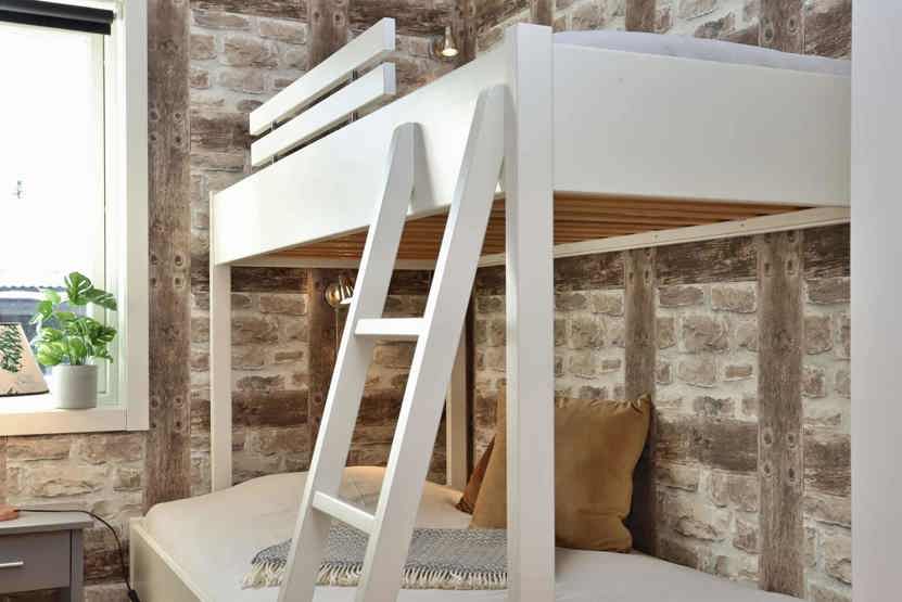 Soveværelse-1 = 1 dobbeltseng. Soveværelse-2 = 2 enkeltsenge. Soveværelse-3 = 1 køjeseng med 105 cm bred underkøje og 80 cm bred overkøje.