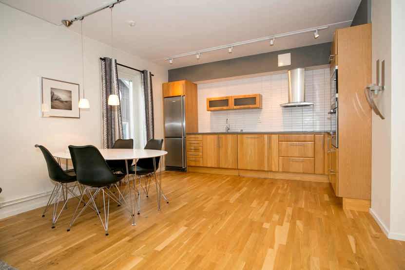 Stue med køkkenafdeling.