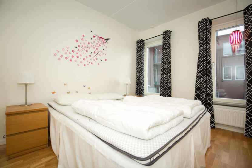 Soveværelse-1 = 1 dobbeltseng. Soveværelse-2 = 1 køyeseng med 120 cm bred underkøye og 90 cm bred overkøye. Soveværelse-3 = 1 enkeltseng 120 cm bred.