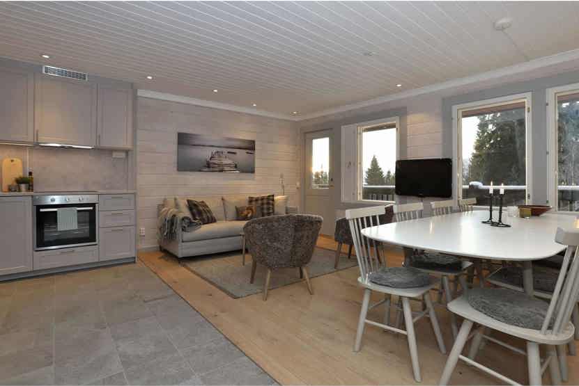 Stue med køkkenafdeling.