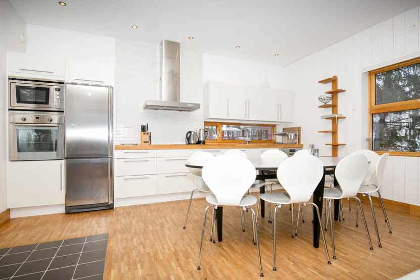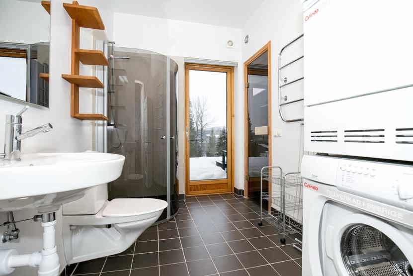 brændeovn (brænde indgår ikke), TV, vaskemaskine, tørretumbler, tørreskab, En trappe ned til indgangen fra parkeringspladsen, skiopbevaring, motorvarmeudtag.