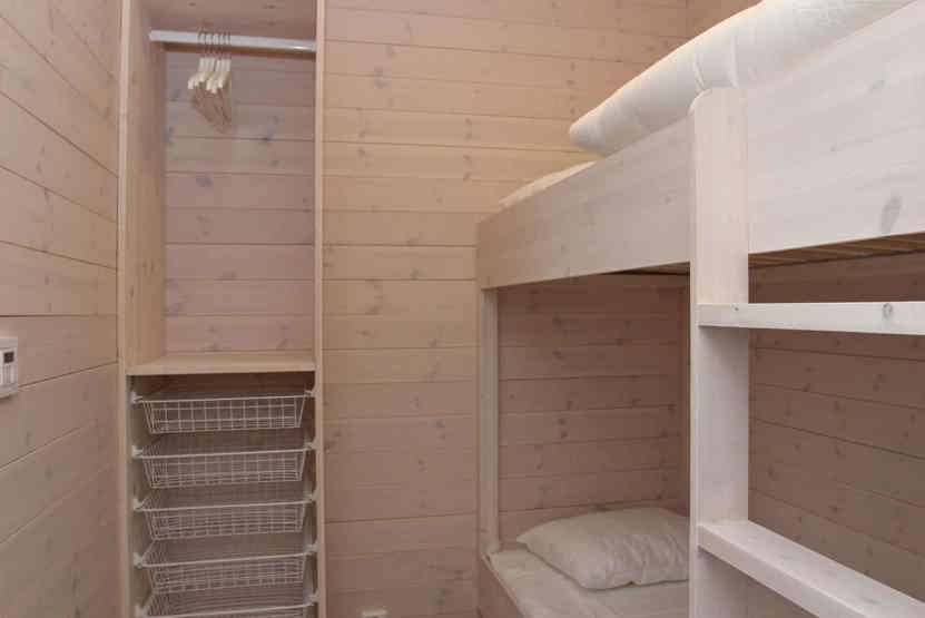 Soveværelse-1 = 1 dobbeltseng 160 cm bred. Soveværelse-2 = 1 køjeseng hvor både over og underkøje er 80 cm bred. Soveværelse-3 = 1 køjeseng hvor både over og underkøje er 80 cm bred.