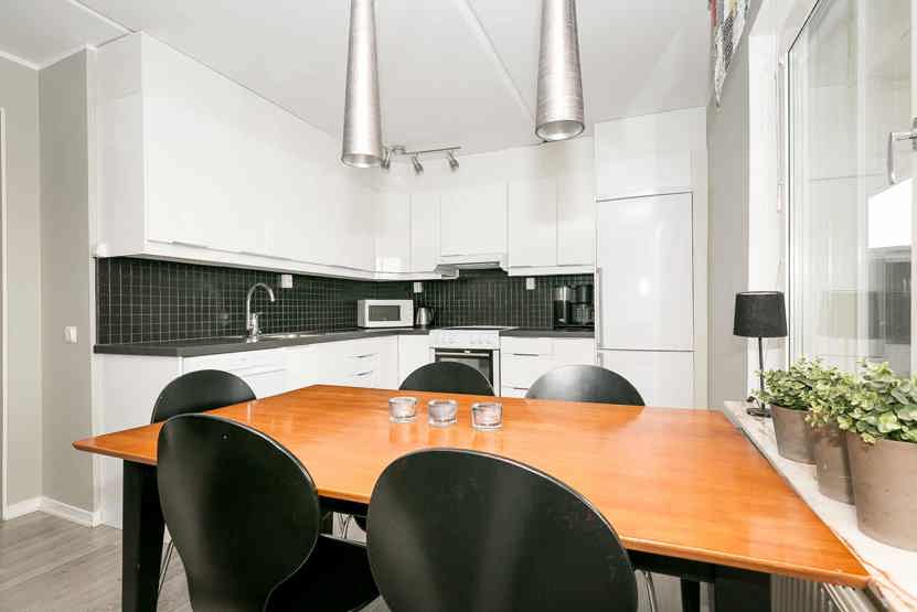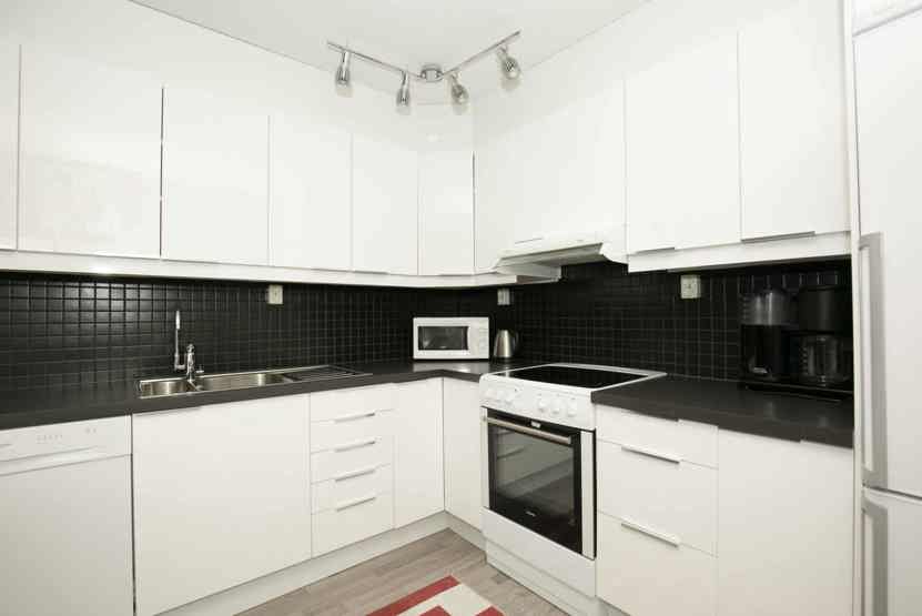 Køkkenet indeholder elkomfur med ovn, køleskab med fryser, opvaskemaskine, mikro.