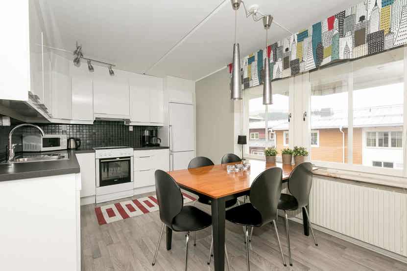 Stue med køkkenafdeling.