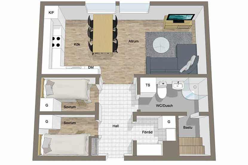 Freestyle ligger i Åre By. Lejlighed i stueetage, 4 sengepladser, 43 kvm, alrum med køkkenafdeling, 2 soveværelse, 1 bruser, 1 WC, sauna.