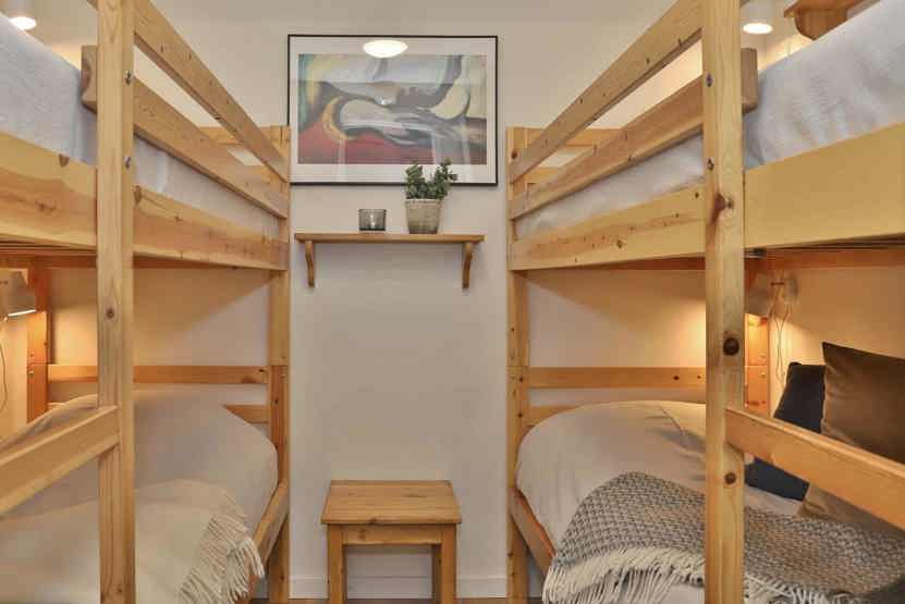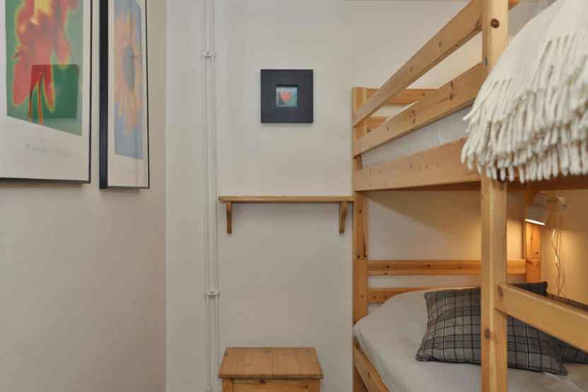 Soveværelse-1 = 2 køjesenge hvor både over og underkøje er 80 cm bred, soveværelse uden vinduer. Soveværelse-2 = 1 køjeseng hvor både over og underkøje er 90 cm bred, soveværelse uden vinduer.