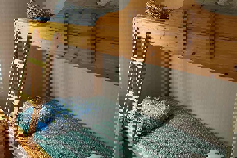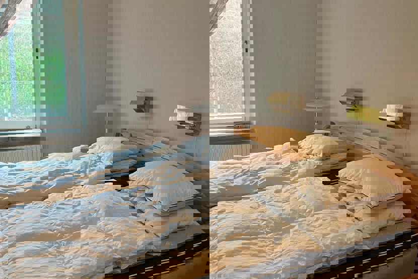 Soveværelse-1 = 1 dobbeltseng 180 cm bred. Soveværelse-2 = 1 køjeseng med 105 cm bred underkøje og 80 cm bred overkøje. Soveværelse-3 = 1 køjeseng med 105 cm bred underkøje og 80 cm bred overkøje.