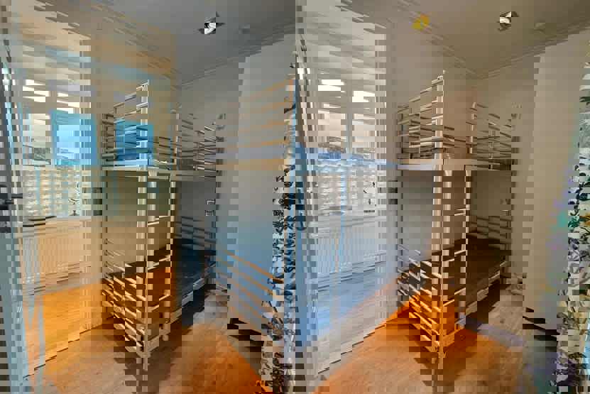 Soveværelse-1 = 1 dobbeltseng 180 cm bred. Soveværelse-2 = 1 køjeseng hvor både over og underkøje er 90 cm bred.