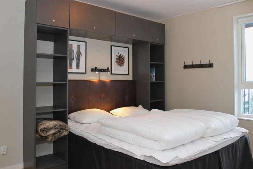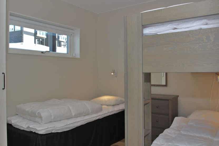 Soveværelse-1 = 1 dobbeltseng 160 cm bred. Soveværelse-2 = 1 køjeseng hvor både over og underkøje er 80 cm bred, 1 enkeltseng 80 cm bred. Soveværelse-3 = 1 køyeseng med 120 cm bred underkøye og 80 cm bred overkøye.