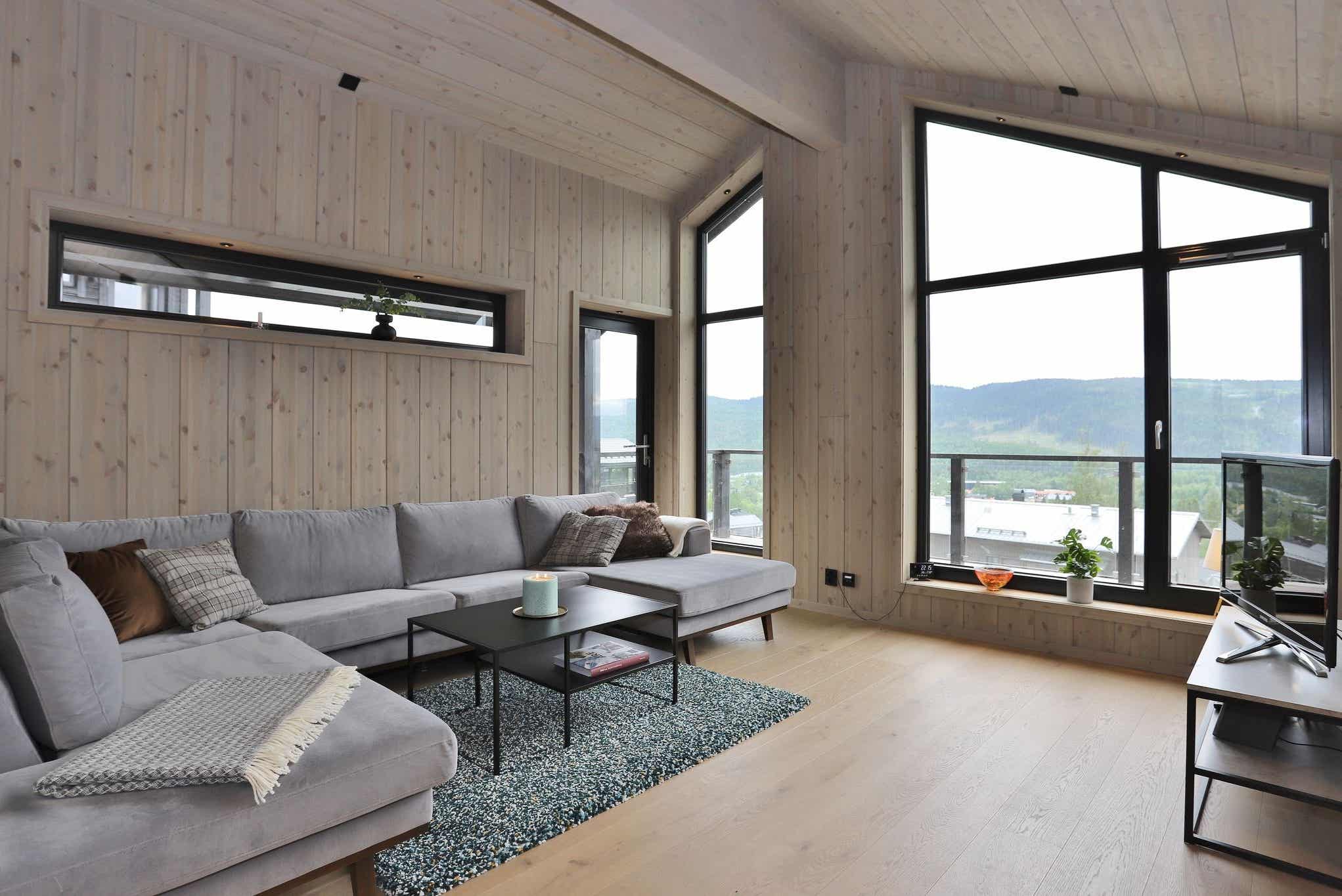 Hytteområde tæt på både langrendsspor og pister Her er der plads til både familien eller gruppen i veludstyrede lejligheder med flot udsigt over byen. Duved by ligger i gåafstand.