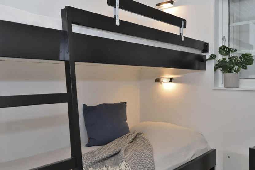 Soveværelse-1 = 1 dobbeltseng. Soveværelse-2 = 1 køjeseng med 90 cm bred underkøje og 80 cm bred overkøje. Soveværelse-3 = 1 køjeseng med 90 cm bred underkøje og 80 cm bred overkøje.