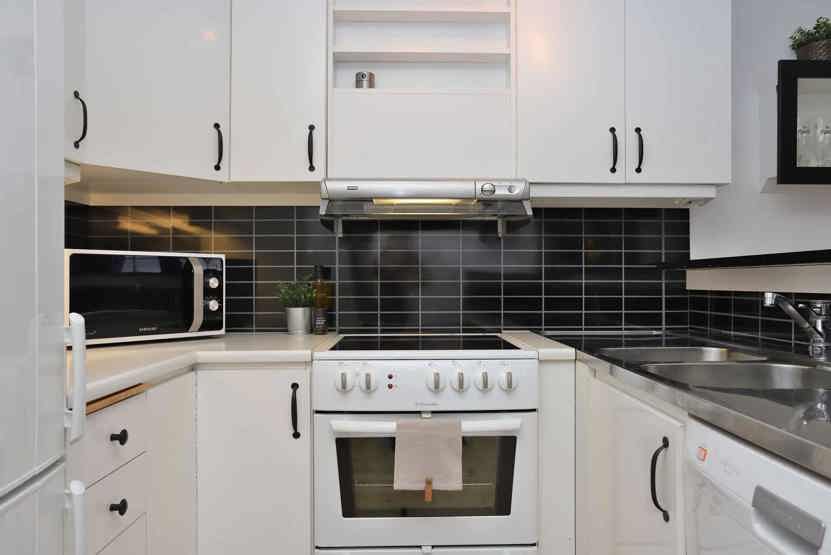 Køkkenet indeholder elkomfur med ovn, køleskab med fryser, opvaskemaskine, mikro.