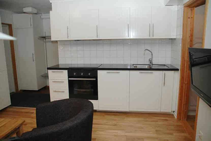 Stue med køkkenafdeling.