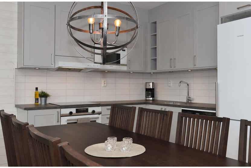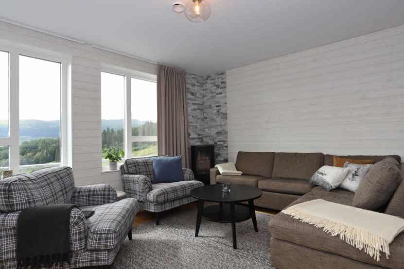 TV, brændeovn (brænde indgår ikke), tørreskab, vaskemaskine, skiopbevaring, 1 parkeringsplads med motorvarmere.