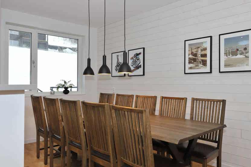 TV, brændeovn (brænde indgår ikke), tørreskab, vaskemaskine, tørretumbler, balkon (der skovles ikke sne), skiopbevaring, 1 parkeringsplads med motorvarmere.