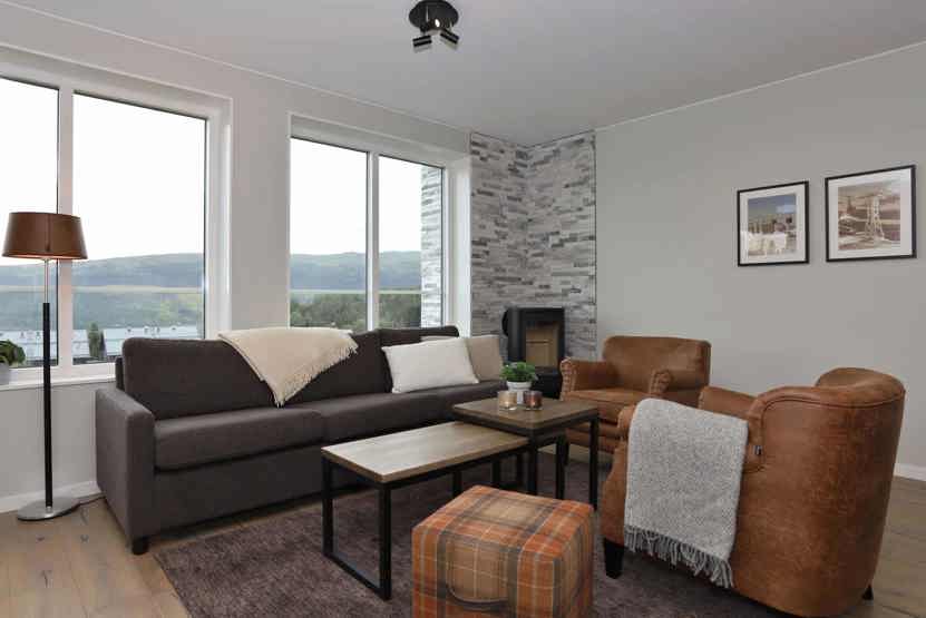 TV, brændeovn (brænde indgår ikke), kombineret vaskemaskine/tørretumbler, tørreskab, balkon (der skovles ikke sne), Havemøbler, skiopbevaring, 1 parkeringsplads.