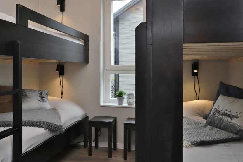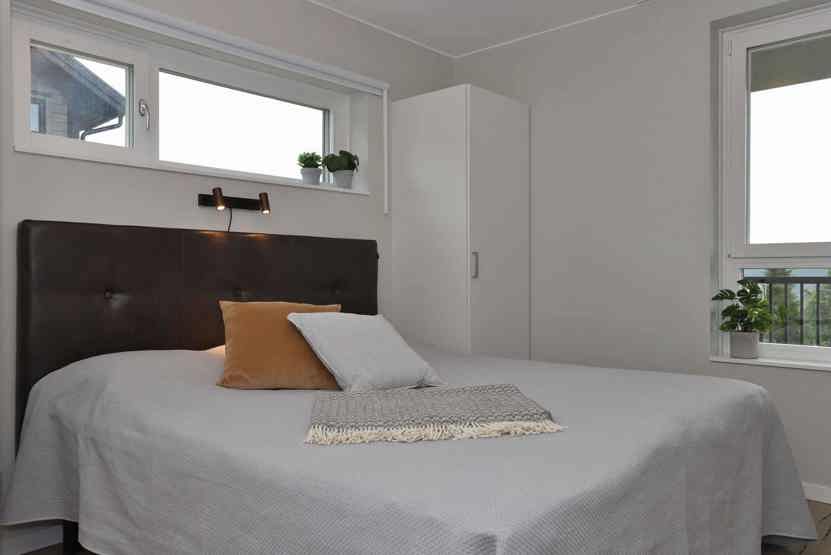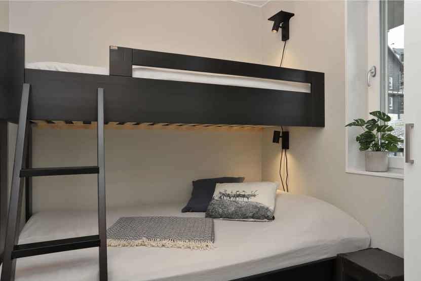 Soveværelse-1 = 1 dobbeltseng som kan laves om til to enkeltsenge. Soveværelse-2 = 2 køjesenge hvor både over og underkøje er 80 cm bred. Soveværelse-3 = 1 køyeseng med 120 cm bred underkøye og 80 cm bred overkøye.