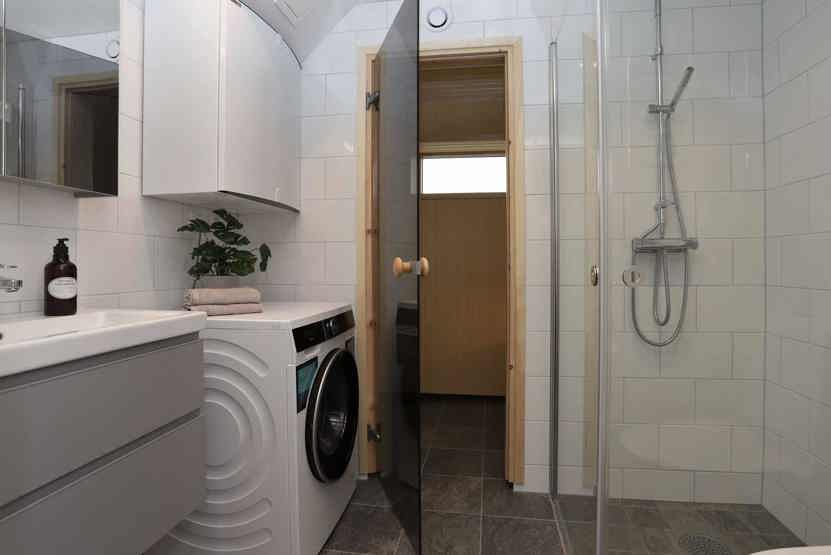 Badeværelse 1 = bruser/WC/sauna. Badeværelse 2 = bruser/WC.