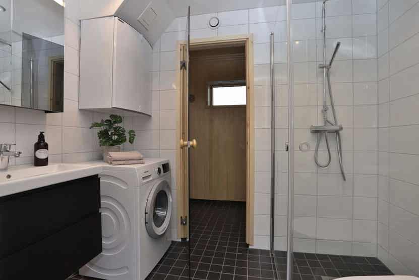 Badeværelse 1 = bruser/WC/sauna. Badeværelse 2 = wc.