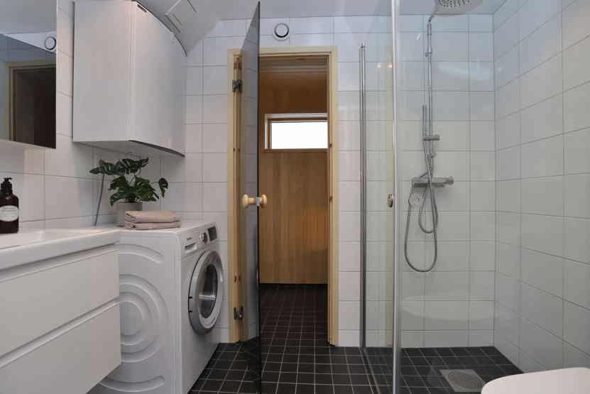 Badeværelse 1 = bruser/WC/sauna. Badeværelse 2 = bruser/WC.