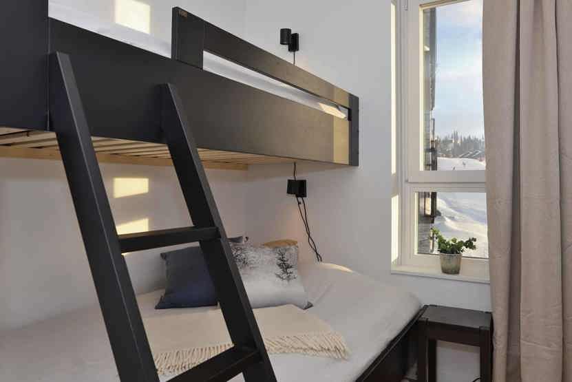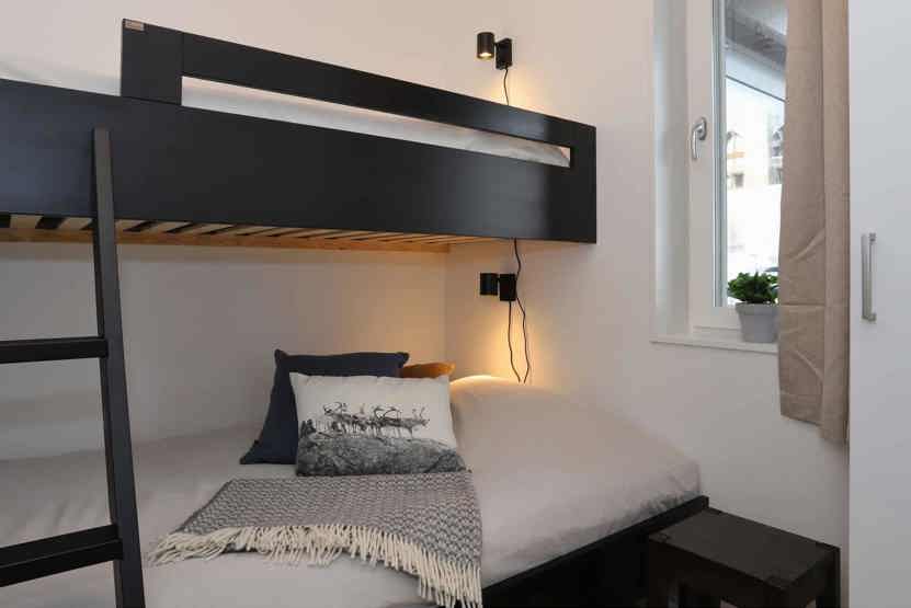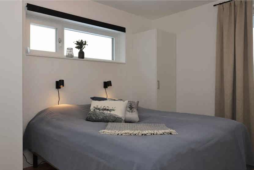 Soveværelse-1 = 1 dobbeltseng 180 cm bred. Soveværelse-2 = 1 køyeseng med 120 cm bred underkøye og 80 cm bred overkøye. Soveværelse-3 = 1 køyeseng med 120 cm bred underkøye og 80 cm bred overkøye.