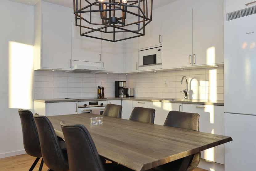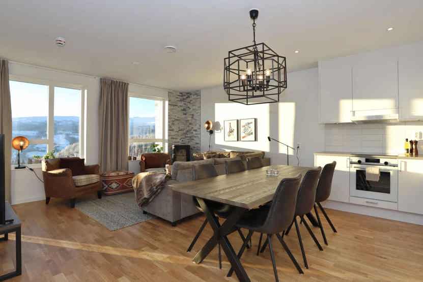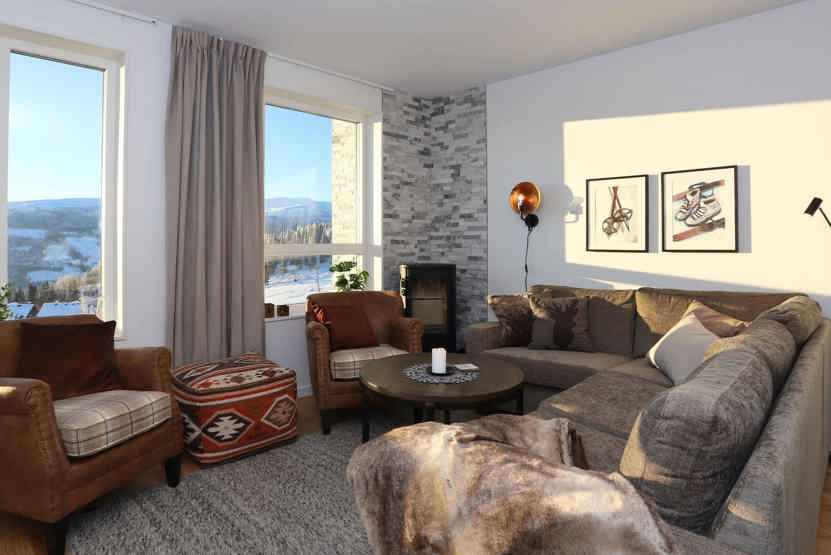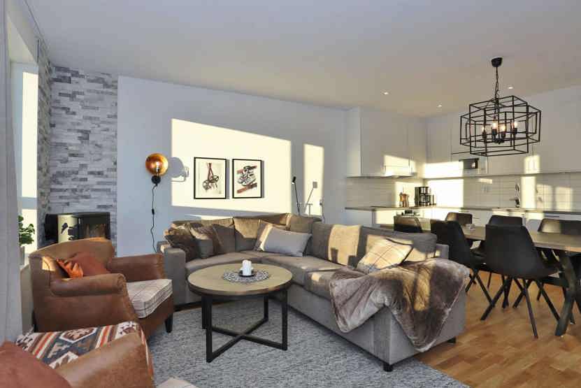 TV, brændeovn (brænde indgår ikke), tørreskab, vaskemaskine, balkon (der skovles ikke sne), skiopbevaring, 1 parkeringsplads med motorvarmere.