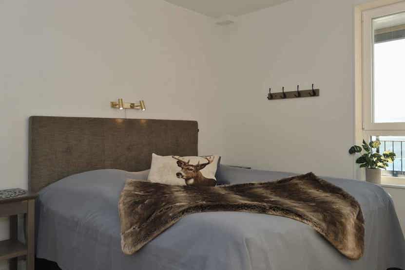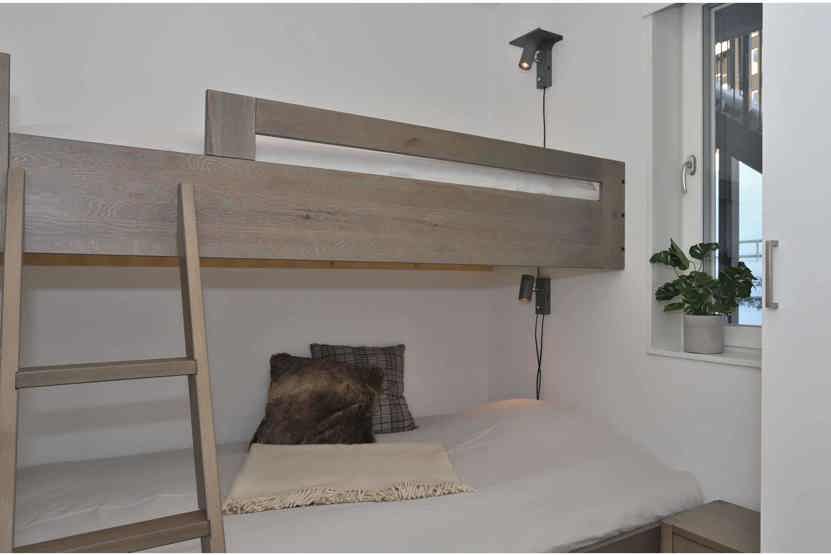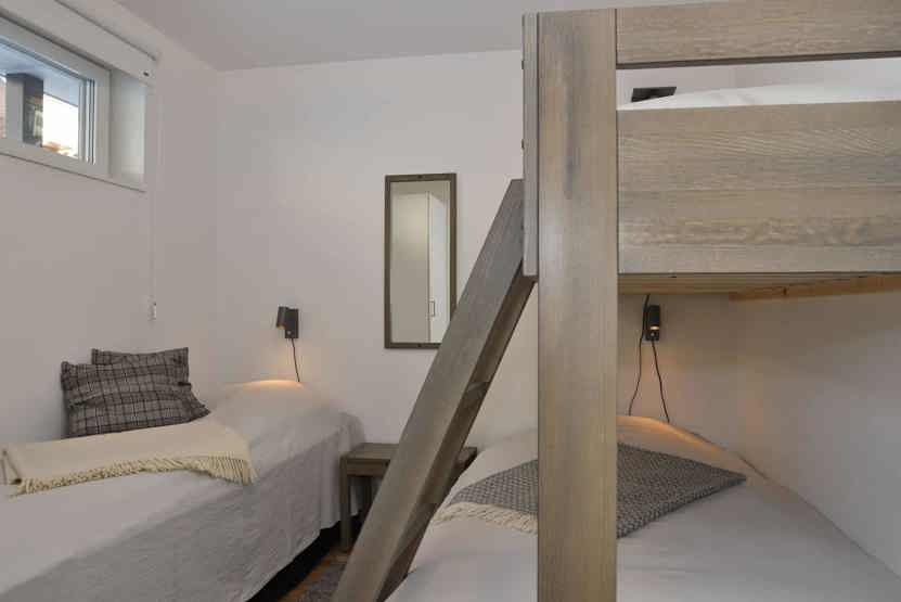 Soveværelse-1 = 1 dobbeltseng. Soveværelse-2 = 1 køyeseng med 120 cm bred underkøye og 80 cm bred overkøye. Soveværelse-3 = 1 køyeseng med 120 cm bred underkøye og 80 cm bred overkøye.