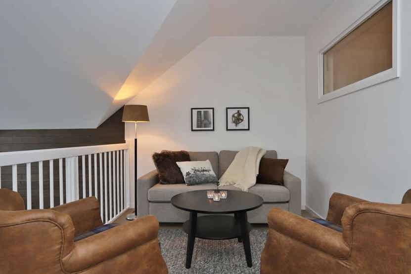 TV, brændeovn (brænde indgår ikke), vaskemaskine, tørreskab, balkon (der skovles ikke sne), skiopbevaring, 1 parkeringsplads med motorvarmere.
