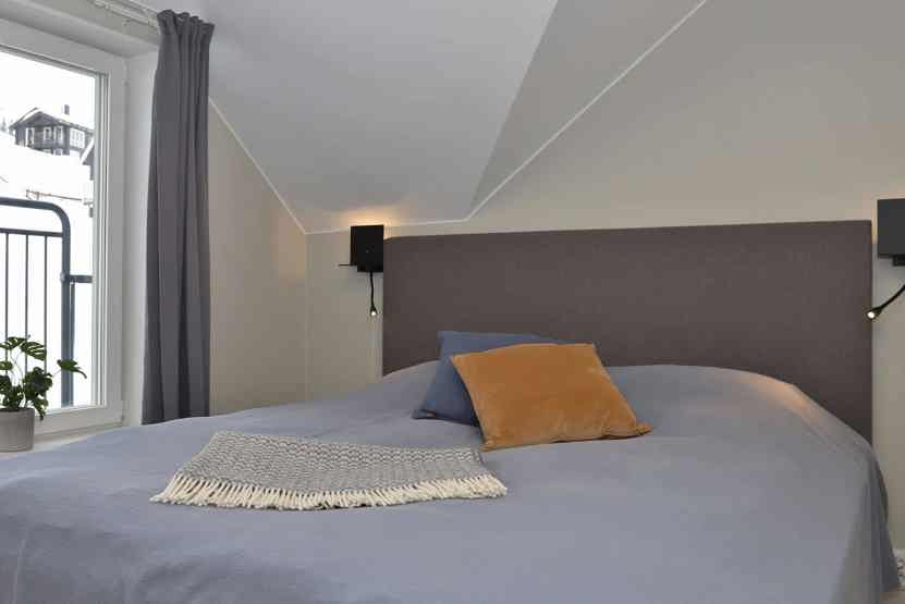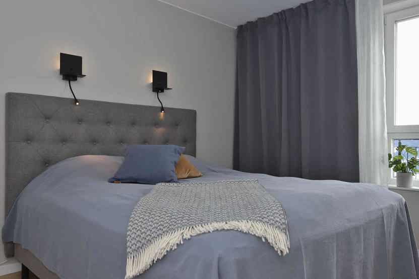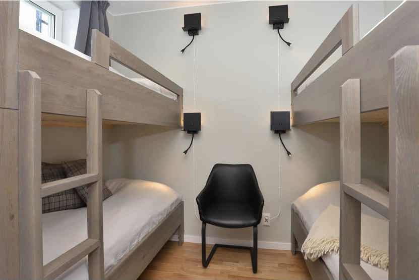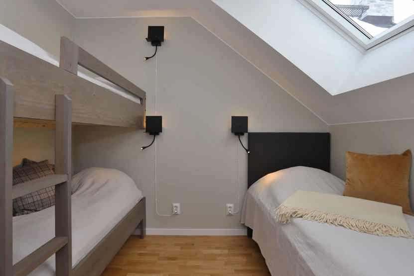 Soveværelse-1 = 1 dobbeltseng. Soveværelse-2 = 1 dobbeltseng. Soveværelse-3 = 2 køjesenge hvor både over og underkøje er 80 cm bred. Soveværelse-4 = 1 enkeltseng, 1 køjeseng hvor både over og underkøje er 80 cm bred.