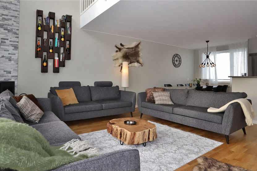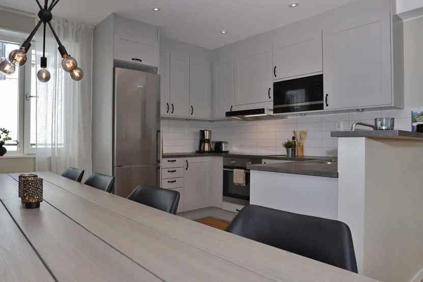 TV, brændeovn (brænde indgår ikke), vaskemaskine, tørreskab, balkon (der skovles ikke sne), skiopbevaring, 1 parkeringsplads.