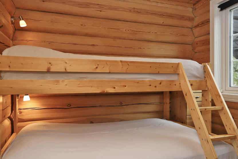 Soveværelse-1 = 1 køyeseng med 120 cm bred underkøye og 80 cm bred overkøye. Soveværelse-2 = 1 dobbeltseng 160 cm bred. Soveværelse-3 = 1 køjeseng med 140 cm bred underkøje. Soveværelse-4 = 1 dobbeltseng 160 cm bred.