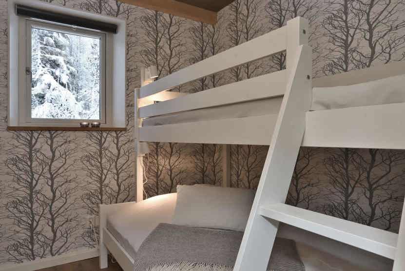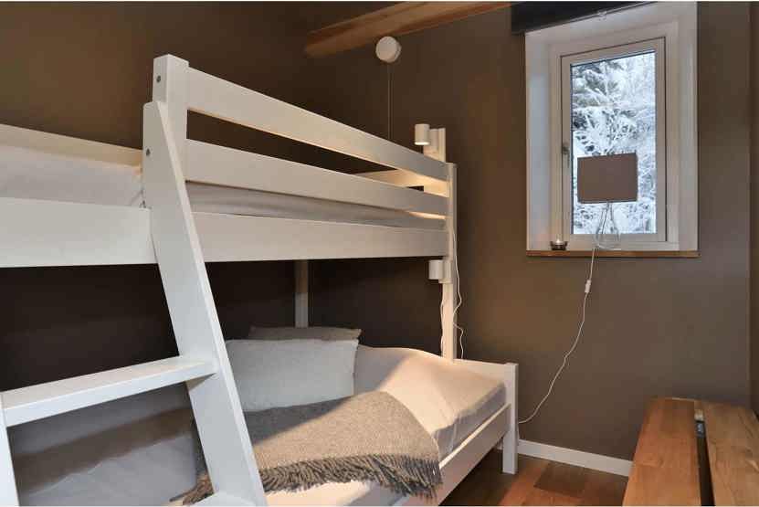 Soveværelse-1 = 1 dobbeltseng 160 cm bred. Soveværelse-2 = 1 køyeseng med 120 cm bred underkøye og 90 cm bred overkøye. Soveværelse-3 = 1 køyeseng med 120 cm bred underkøye og 90 cm bred overkøye.