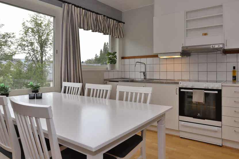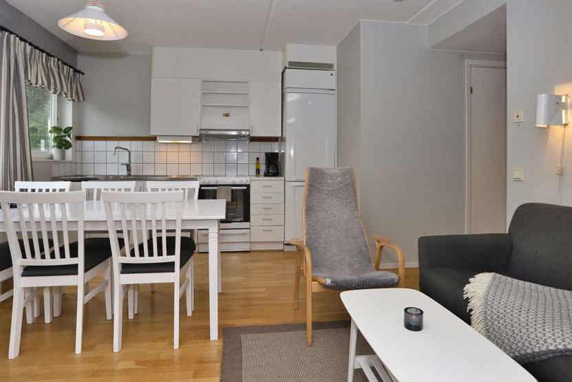 Stue med køkkenafdeling.