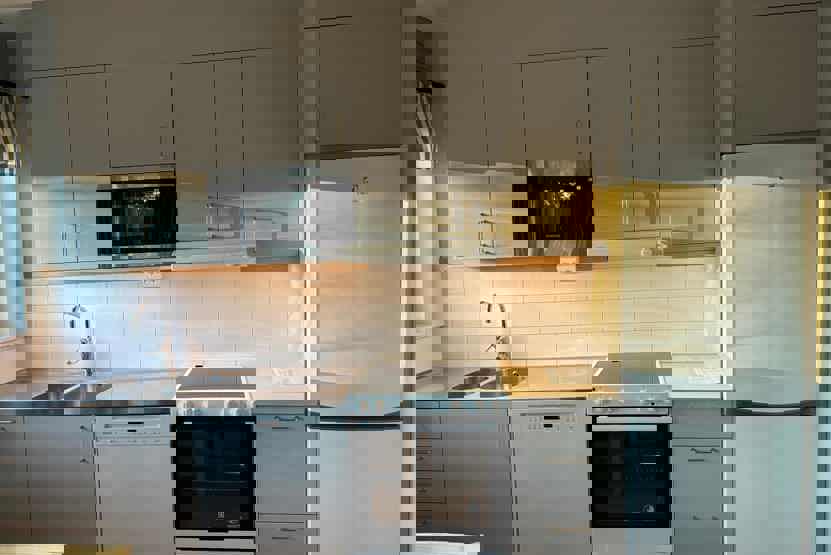 Køkkenet indeholder elkomfur med ovn, køleskab med fryser, opvaskemaskine, mikro.