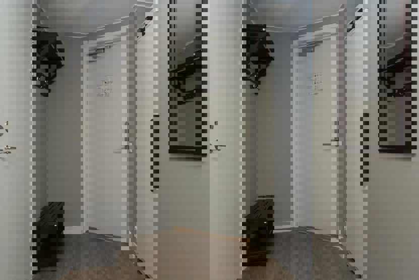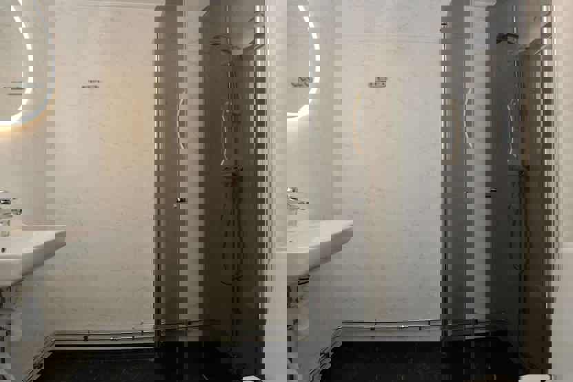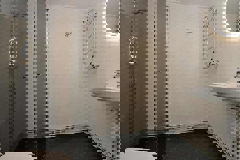 Badeværelse 1 = 1 bruser/WC. Badeværelse 2 = 1 bruser/WC.
